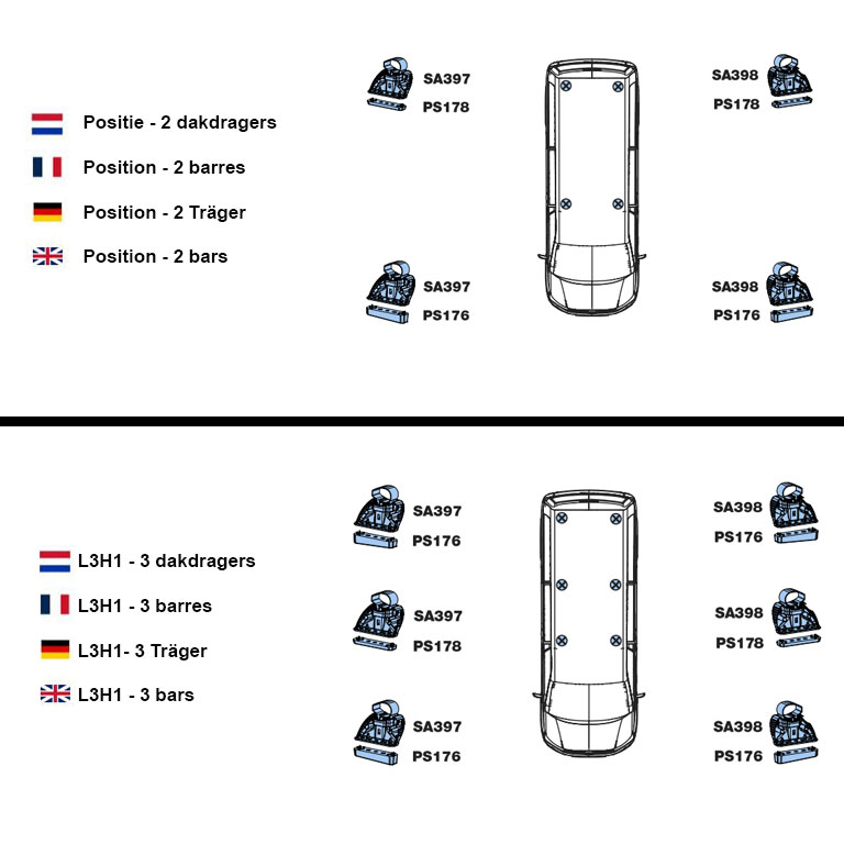 Achtung! Eine nachträgliche Erweiterung des Dachträgersets ist leider nicht möglich. Einzelne Streben sind nicht verfügbar! Darüber hinaus hat jeder Dachträger eine spezifische Position auf dem Dach. Es ist daher wichtig, den Dachträger gemäß der Anleitung zu montieren.