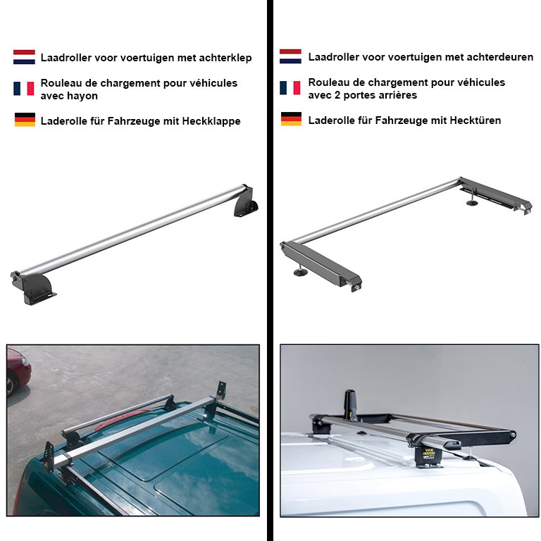 Achtung: Die Laderolle kann nur in Kombination mit unseren Dachträgern von Van Guard montiert werden und eignet sich nicht für die Montage auf Fahrzeugen mit Rückfahrkamera. Die abgebildeten Dachträger sind nicht im Lieferumfang enthalten und können separat erworben werden.
