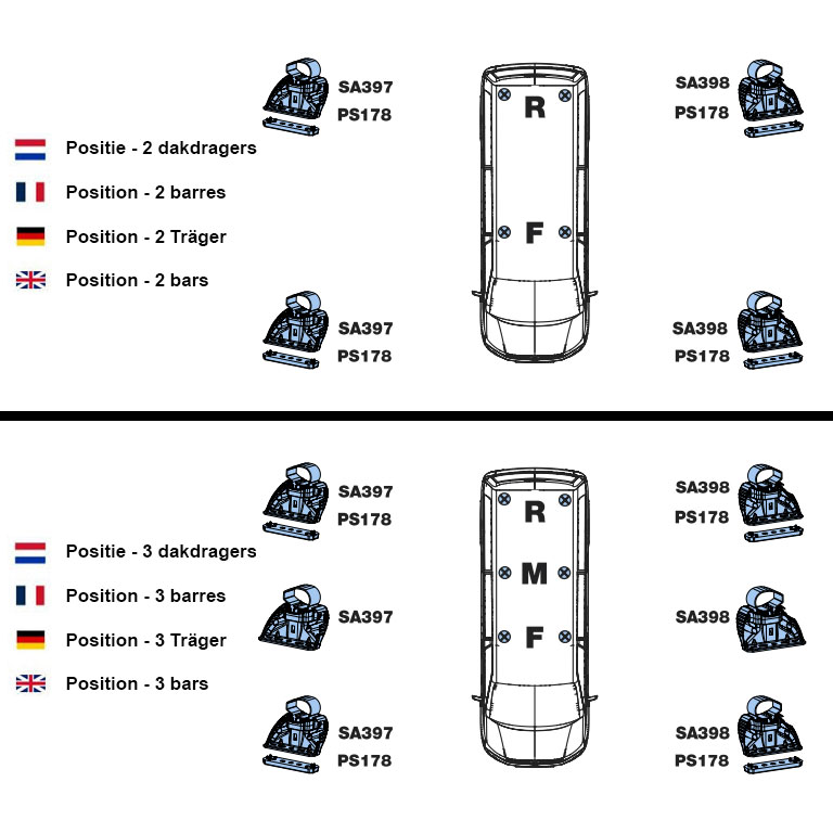 Achtung! Eine nachträgliche Erweiterung des Dachträgersets ist nicht möglich. Einzelne Streben sind nicht verfügbar! Darüber hinaus hat jeder Dachträger eine spezifische Position auf dem Dach. Es ist daher wichtig, den Dachträger gemäß der Anleitung zu montieren.