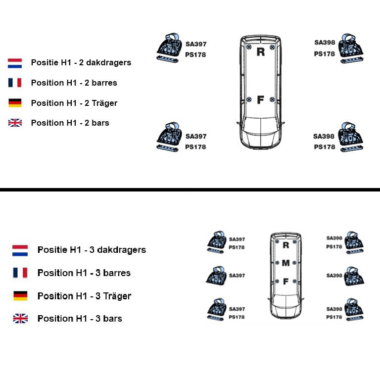 Achtung! Eine nachträgliche Erweiterung des Dachträgersets ist leider nicht möglich. Einzelne Streben sind nicht verfügbar! Darüber hinaus hat jeder Dachträger eine spezifische Position auf dem Dach. Es ist daher wichtig, den Dachträger gemäß der Anleitung zu montieren.