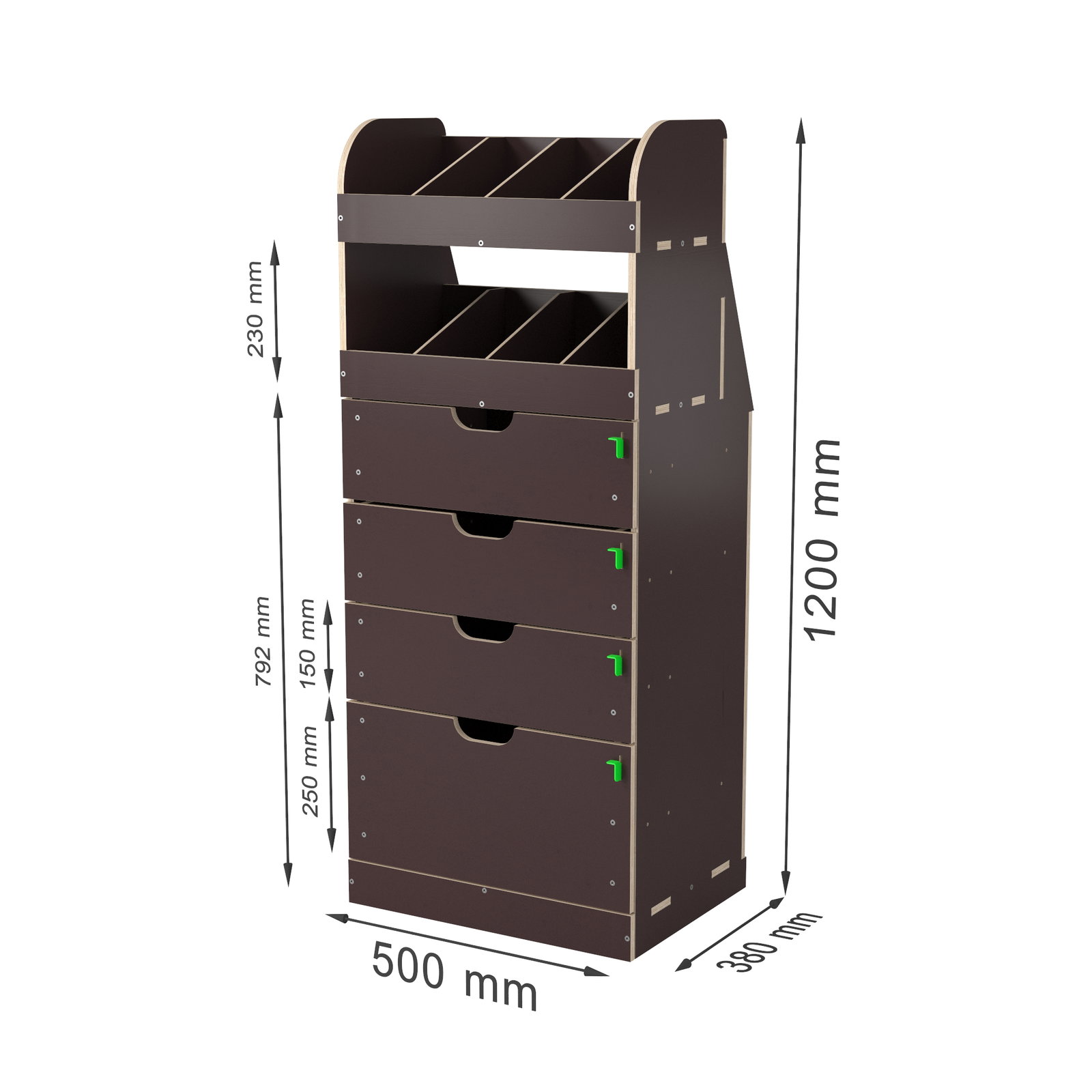 - 3 kleine Schubladen und 1 große Schublade mit abschließbaren Griffen