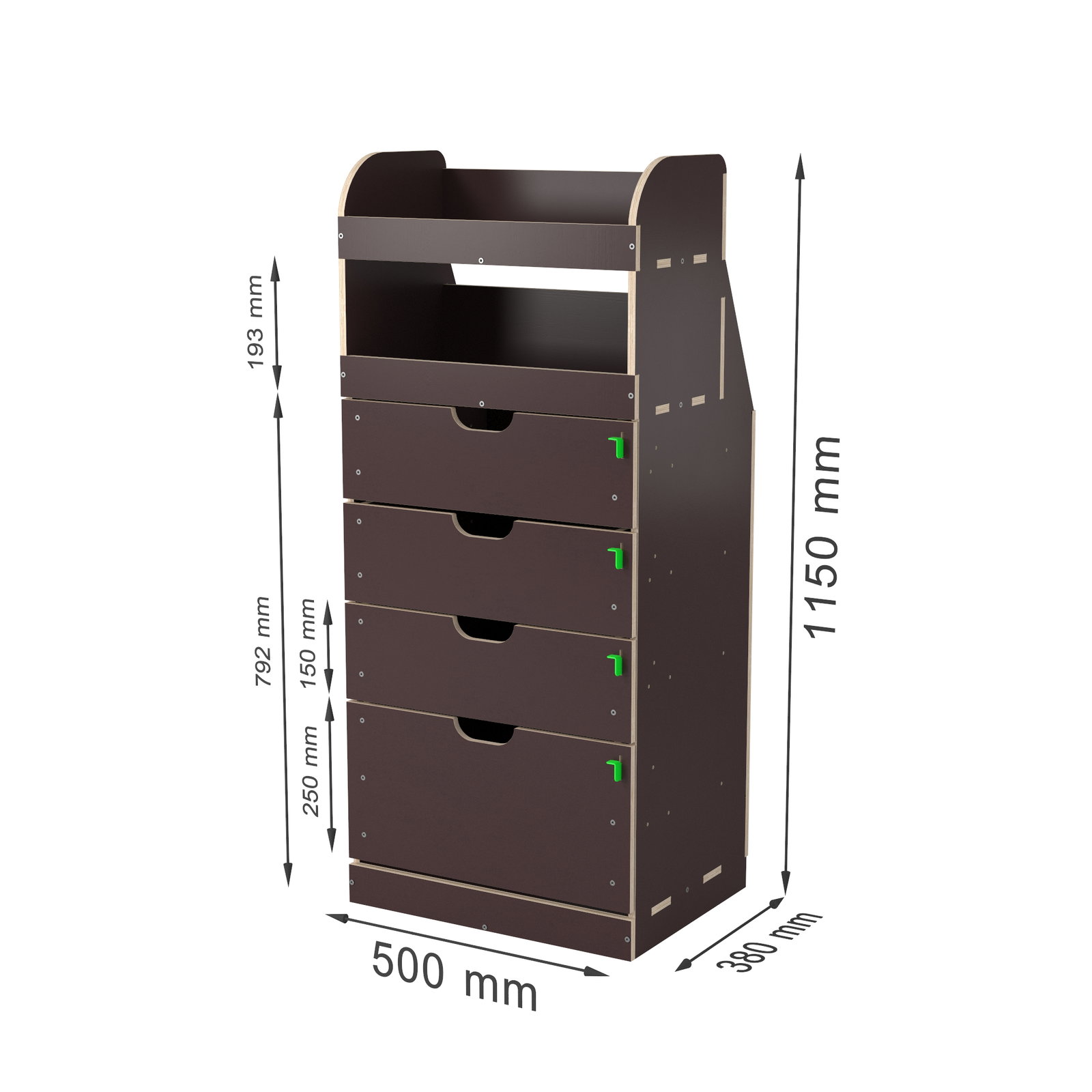 - Länge 500 mm Breite 380 mm x Höhe 1150 mm