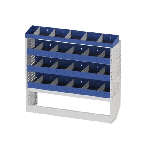 Wenn Ihr Transporter nicht richtig eingeräumt ist, verlieren Sie Zeit bei der Suche nach Ihrem Werkzeug. Mit dieser Fahrzeugeinrichtung können Sie geordnet und übersichtlich arbeiten. Die verschiedenen Optionen, aus denen sich dieser Schrank zusammensetzt, ermöglicht es Ihnen, sowohl große Geräte (Bohrer, Schraubendreher, Hämmer, Werkzeugkästen usw.) als auch kleine Geräte (Schrauben, Zubehör usw.) zu verstauen.