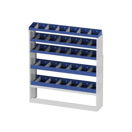 Wenn Ihr Transporter nicht richtig eingeräumt ist, verlieren Sie Zeit bei der Suche nach Ihrem Werkzeug. Mit dieser Fahrzeugeinrichtung können Sie geordnet und übersichtlich arbeiten. Die verschiedenen Optionen, aus denen sich dieser Schrank zusammensetzt, ermöglicht es Ihnen, sowohl große Geräte (Bohrer, Schraubendreher, Hämmer, Werkzeugkästen usw.) als auch kleine Geräte (Schrauben, Zubehör usw.) zu verstauen.
