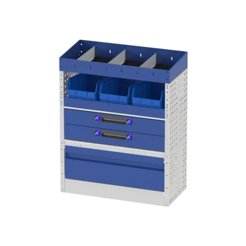 Wenn Ihr Transporter nicht richtig eingeräumt ist, verlieren Sie Zeit bei der Suche nach Ihrem Werkzeug. Mit dieser Fahrzeugeinrichtung können Sie geordnet und übersichtlich arbeiten. Die verschiedenen Optionen, aus denen sich dieser Schrank zusammensetzt, ermöglicht es Ihnen, sowohl große Geräte (Bohrer, Schraubendreher, Hämmer, Werkzeugkästen usw.) als auch kleine Geräte (Schrauben, Zubehör usw.) zu verstauen.