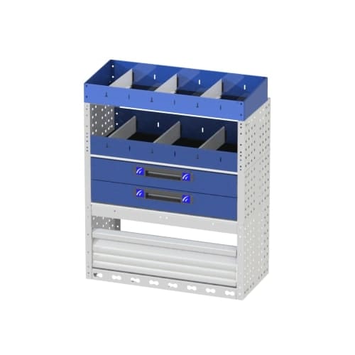 Wenn Ihr Transporter nicht richtig eingeräumt ist, verlieren Sie Zeit bei der Suche nach Ihrem Werkzeug. Mit dieser Fahrzeugeinrichtung können Sie geordnet und übersichtlich arbeiten. Die verschiedenen Optionen, aus denen sich dieser Schrank zusammensetzt, ermöglicht es Ihnen, sowohl große Geräte (Bohrer, Schraubendreher, Hämmer, Werkzeugkästen usw.) als auch kleine Geräte (Schrauben, Zubehör usw.) zu verstauen.