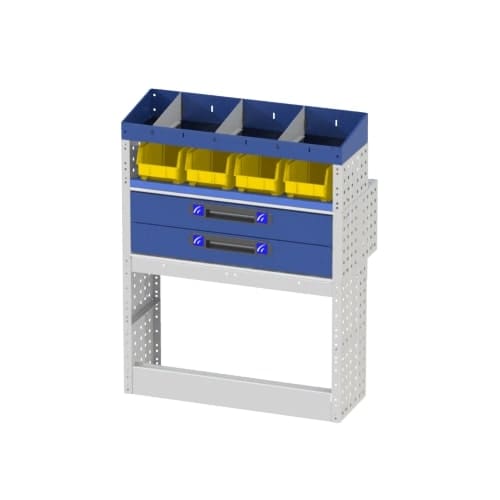 Wenn Ihr Transporter nicht richtig eingeräumt ist, verlieren Sie Zeit bei der Suche nach Ihrem Werkzeug. Mit dieser Fahrzeugeinrichtung können Sie geordnet und übersichtlich arbeiten. Die verschiedenen Optionen, aus denen sich dieser Schrank zusammensetzt, ermöglicht es Ihnen, sowohl große Geräte (Bohrer, Schraubendreher, Hämmer, Werkzeugkästen usw.) als auch kleine Geräte (Schrauben, Zubehör usw.) zu verstauen.
