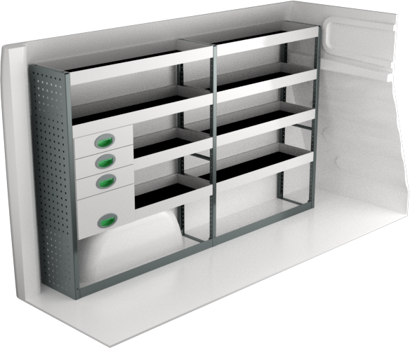 Fahrzeugeinrichtung Renault Trafic E-Tech 2022+ Premium Line | L1H1 | 1998x300x1220 mm | 4 Regalböden + 4 Schubladen