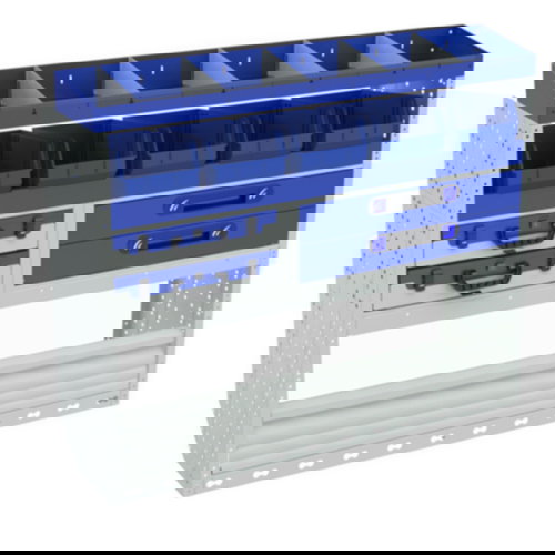 Wenn Ihr Transporter nicht richtig eingeräumt ist, verlieren Sie Zeit bei der Suche nach Ihrem Werkzeug. Mit dieser Fahrzeugeinrichtung können Sie geordnet und übersichtlich arbeiten. Die verschiedenen Optionen, aus denen sich dieser Schrank zusammensetzt, ermöglicht es Ihnen, sowohl große Geräte (Bohrer, Schraubendreher, Hämmer, Werkzeugkästen usw.) als auch kleine Geräte (Schrauben, Zubehör usw.) zu verstauen.
