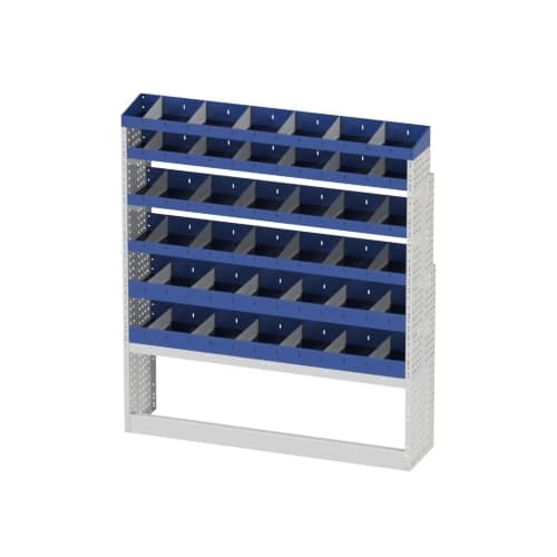Wenn Ihr Transporter nicht richtig eingeräumt ist, verlieren Sie Zeit bei der Suche nach Ihrem Werkzeug. Mit dieser Fahrzeugeinrichtung können Sie geordnet und übersichtlich arbeiten. Die verschiedenen Optionen, aus denen sich dieser Schrank zusammensetzt, ermöglicht es Ihnen, sowohl große Geräte (Bohrer, Schraubendreher, Hämmer, Werkzeugkästen usw.) als auch kleine Geräte (Schrauben, Zubehör usw.) zu verstauen.