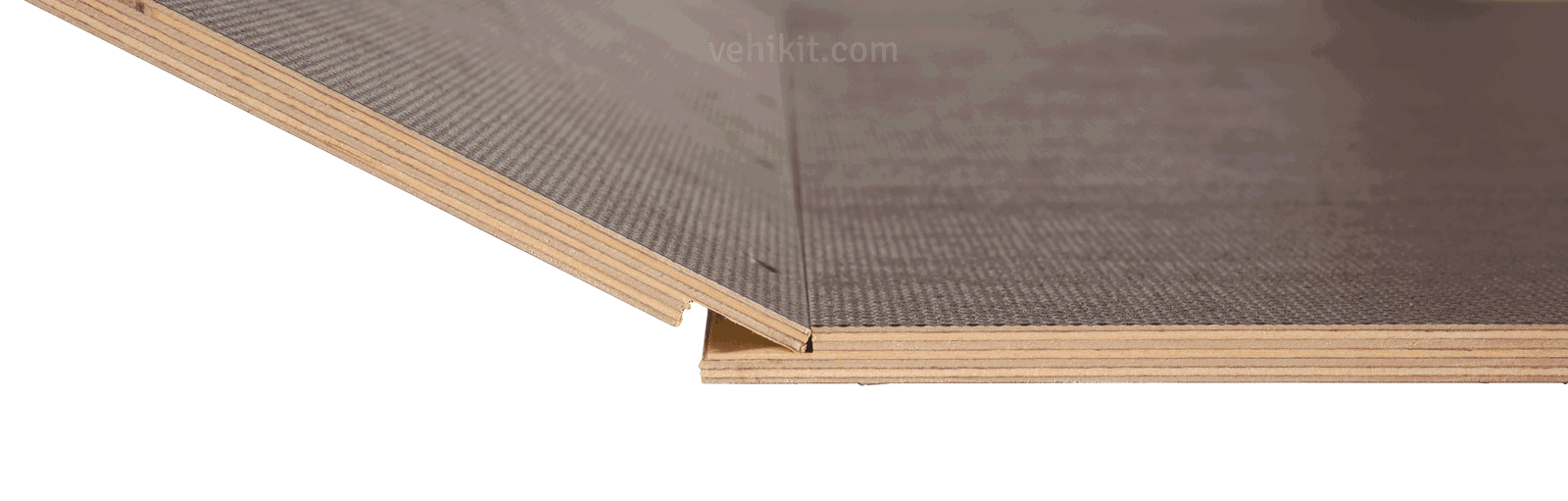 Das Paket enthält einen braunen 9-mm-Laderaumboden aus Birkensperrholz mit rutsch- und verschleißfester Beschichtung, die das Ausrutschen verhindert und das Schieben von Ladung über den Boden ermöglicht. Der Boden besteht aus mehreren Teilen mit Wechselfalzverbindung, die einfach miteinander verschraubt werden können und bündig abschließen. Die Verbindungen sind vorgebohrt. Der Laderaumboden ist mit Öffnungen für die originalen Zurrösen ausgestattet, falls diese ab Werk vorhanden sind, sodass die Ladung direkt sicher befestigt werden kann.