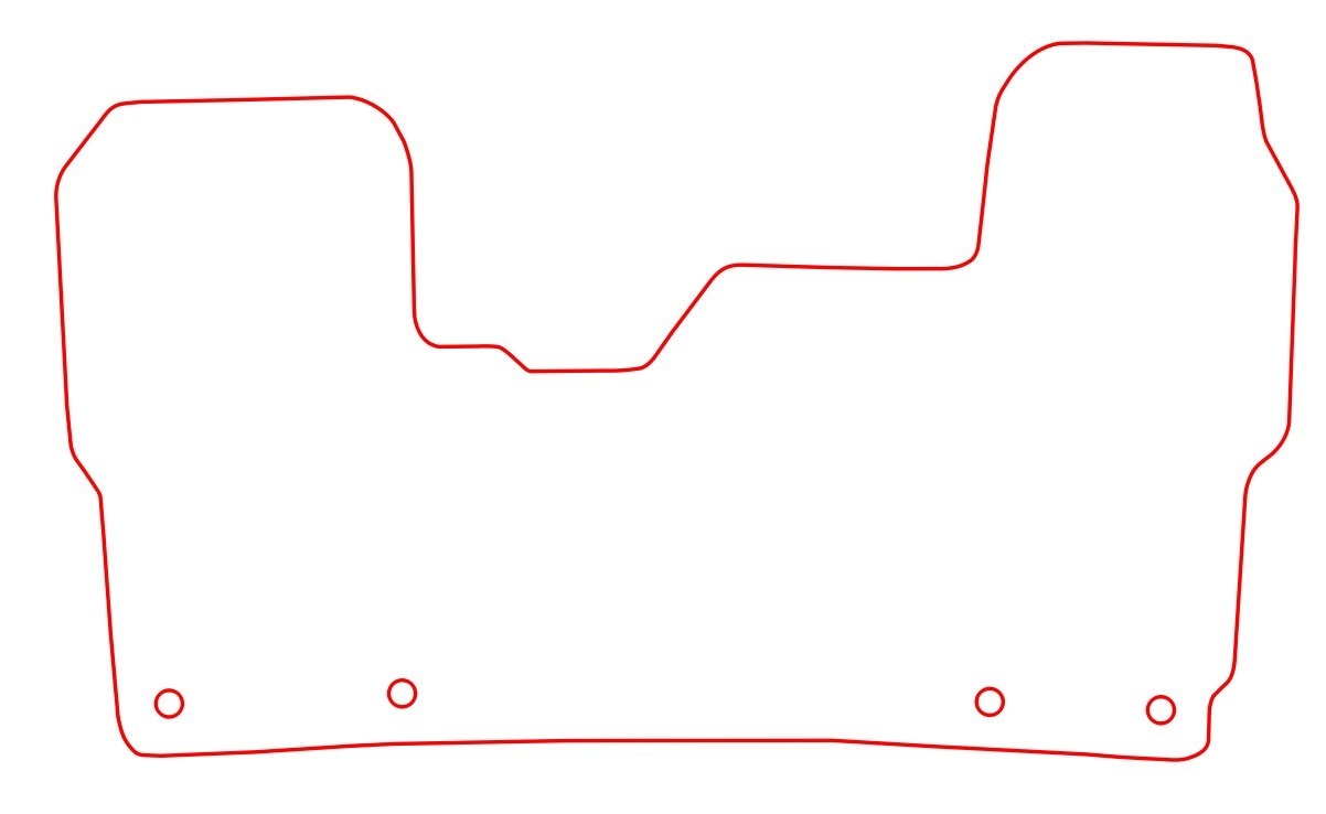 Achtung! Die gezeigten Abbildungen der Luxus-Nadelfilz-Automatten sind Beispiele und geben nicht die genaue Passform an. Die Automatten werden passgenau angefertigt für Ihren Ford Transit. Prüfen Sie die Passform anhand der roten Strichzeichnungen.