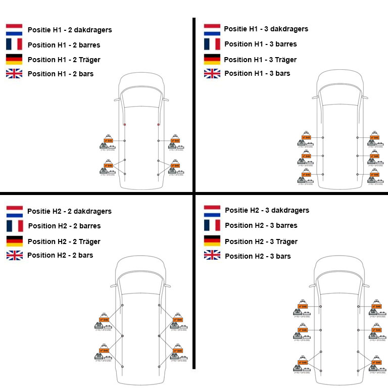 Achtung! Eine nachträgliche Erweiterung des Dachträgersatzes ist nicht möglich. Einzelne Streben sind nicht verfügbar! Darüber hinaus hat jeder Dachträger eine spezifische Position auf dem Dach. Es ist daher wichtig, den Dachträger gemäß der Anleitung zu montieren.