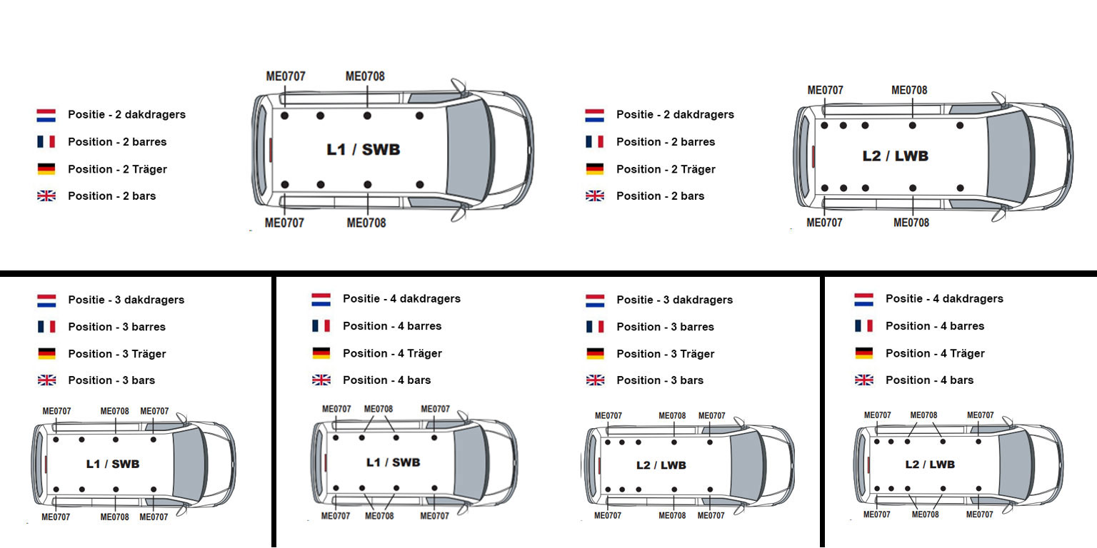 Achtung! Es ist möglich, dass die maximale Traglast der Dachträger höher ist, als die zugelassene Dachkapazität des Transporters. Es gilt immer die vom Fahrzeughersteller angegebene maximale Dachlast.