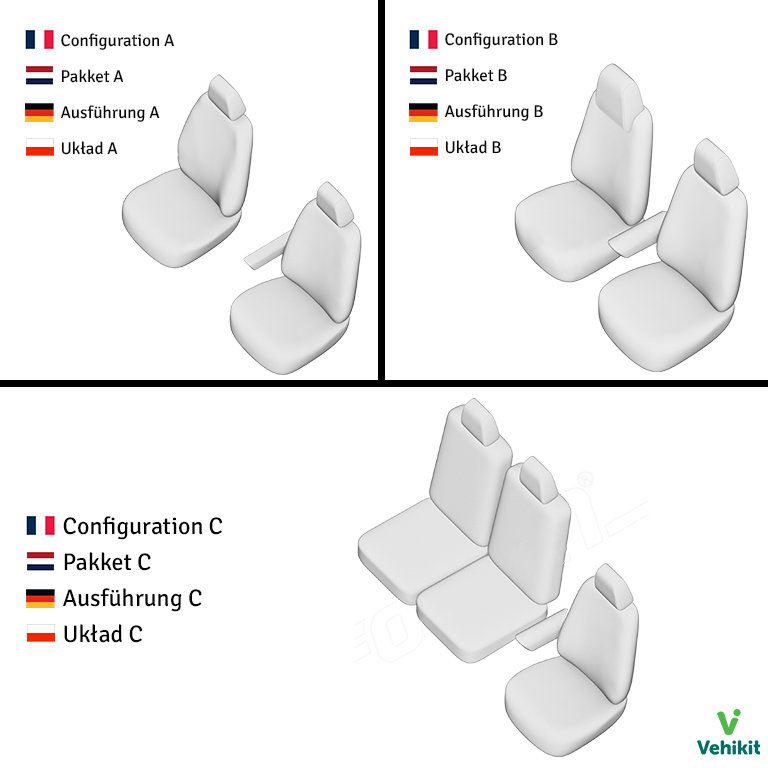 | Beifahrersitzbezüge 🛈 | 1 - Sitzfläche 1 - Rückenlehne | 1 - Sitzfläche 1 - Rückenlehne |