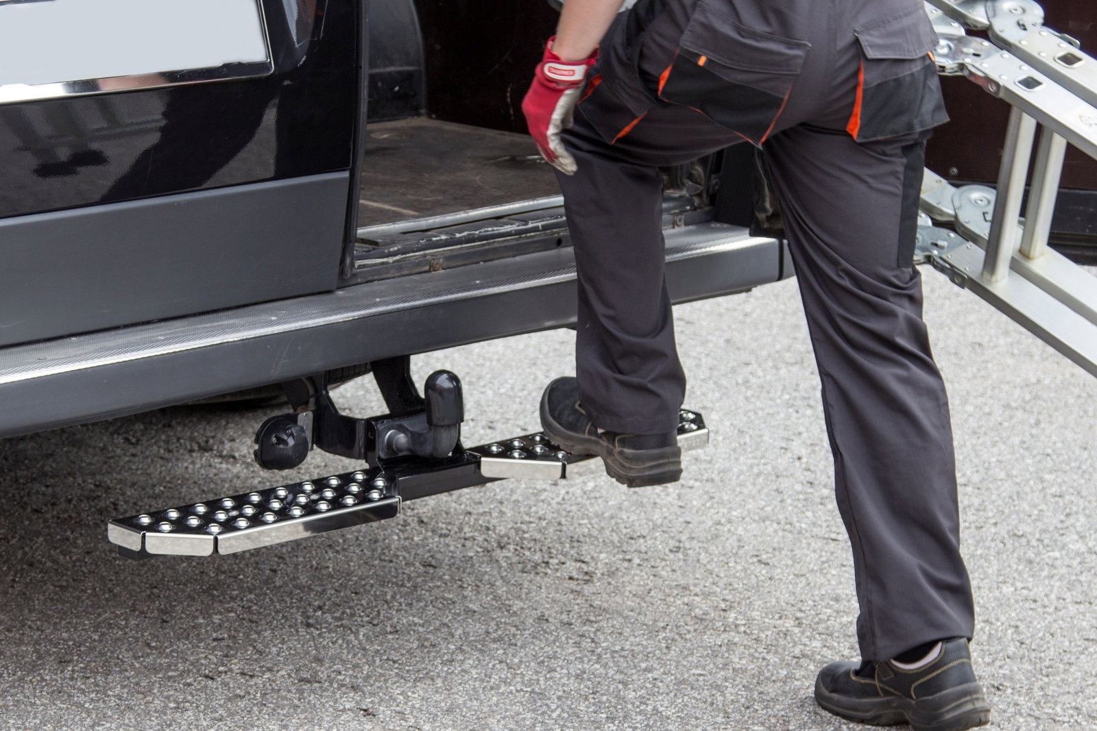 Eine Trittstufe ist eine Notwendigkeit für jeden, der oft in den Laderaum seines Nutzfahrzeuges muss. Mit der Trittstufe erleichtern Sie sich das Be- und Entladen enorm.