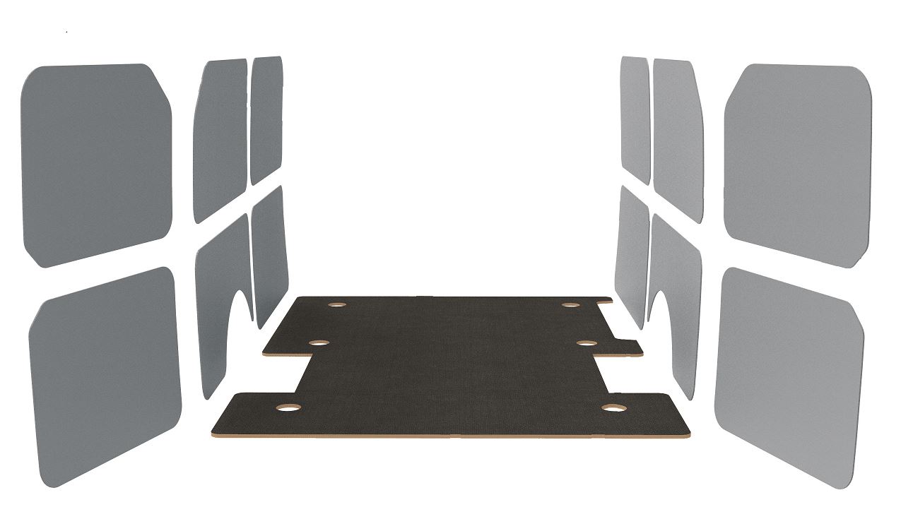 Die Vehikit Seitenwandverkleidung (Version unten/mitte/oben) besteht aus 4 mm starkem HDF mit einer hellgrauen Beschichtung (vergleichbar mit RAL 7035) oder aus 4,2 mm starkem 1500 g/m2 Polypropylen (vergleichbar mit RAL 7046). Die Vehikit Seitenwandverkleidung garantiert Stabilität, Bruchfestigkeit und Formfestigkeit.