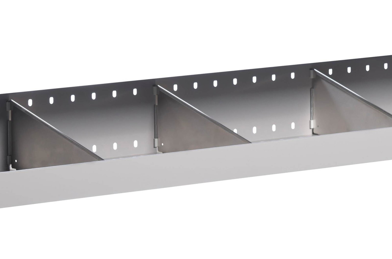 Cet aménagement se compose de :1 x tablette supérieure avec 3 séparations / 1 x plateau avec 4 bacs en plastique amovibles / 1 x étage avec 3 séparations / 1 x tiroir . Assez de compartiments pour pouvoir ranger intelligemment tout votre matériel. L’aluminium et l’acier vous assurent une excellente résistance.