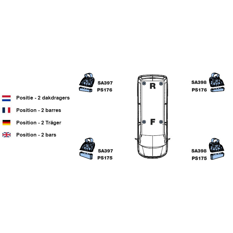 Attention! Si vous achetez un lot de 2 barres, il ne sera pas possible d’acheter une troisième ou quatrième barre par la suite, les barres n’étant pas vendues de manière détachée. De plus, chaque barre de toit a une position prédéfinie sur le toit, vous ne pouvez donc pas les placer où vous le souhaitez. Il est donc important de monter les barres de toit en suivant les instructions.