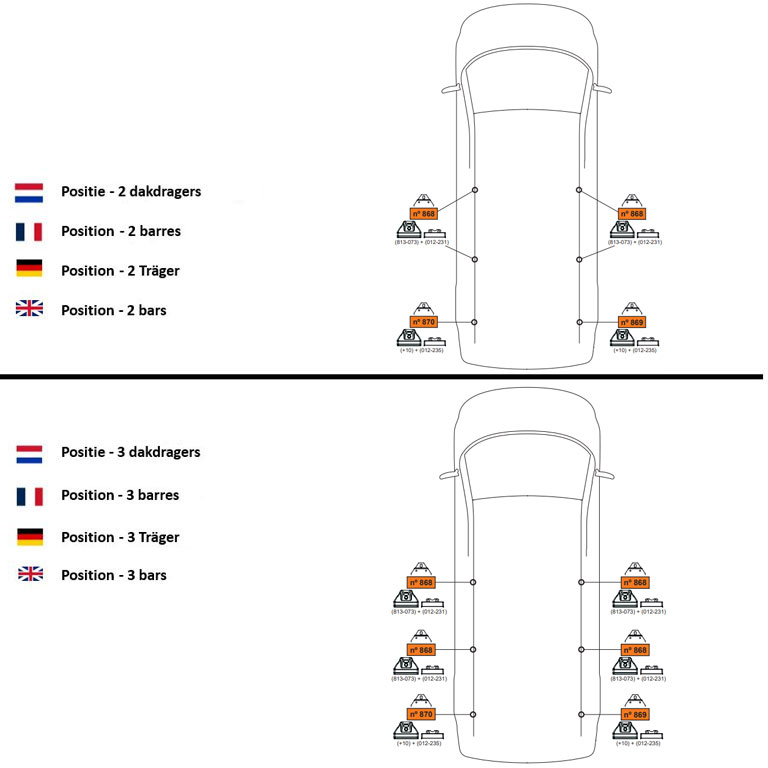 Attention ! Si vous achetez un set de 2, il ne sera pas possible de compléter votre set avec une barre supplémentaire après votre achat, les barres de toit n’étant pas vendues à l’unité. Ainsi, chaque barre a sa propre position sur le toit. Il est donc important de monter les barres de toit conformément aux instructions.