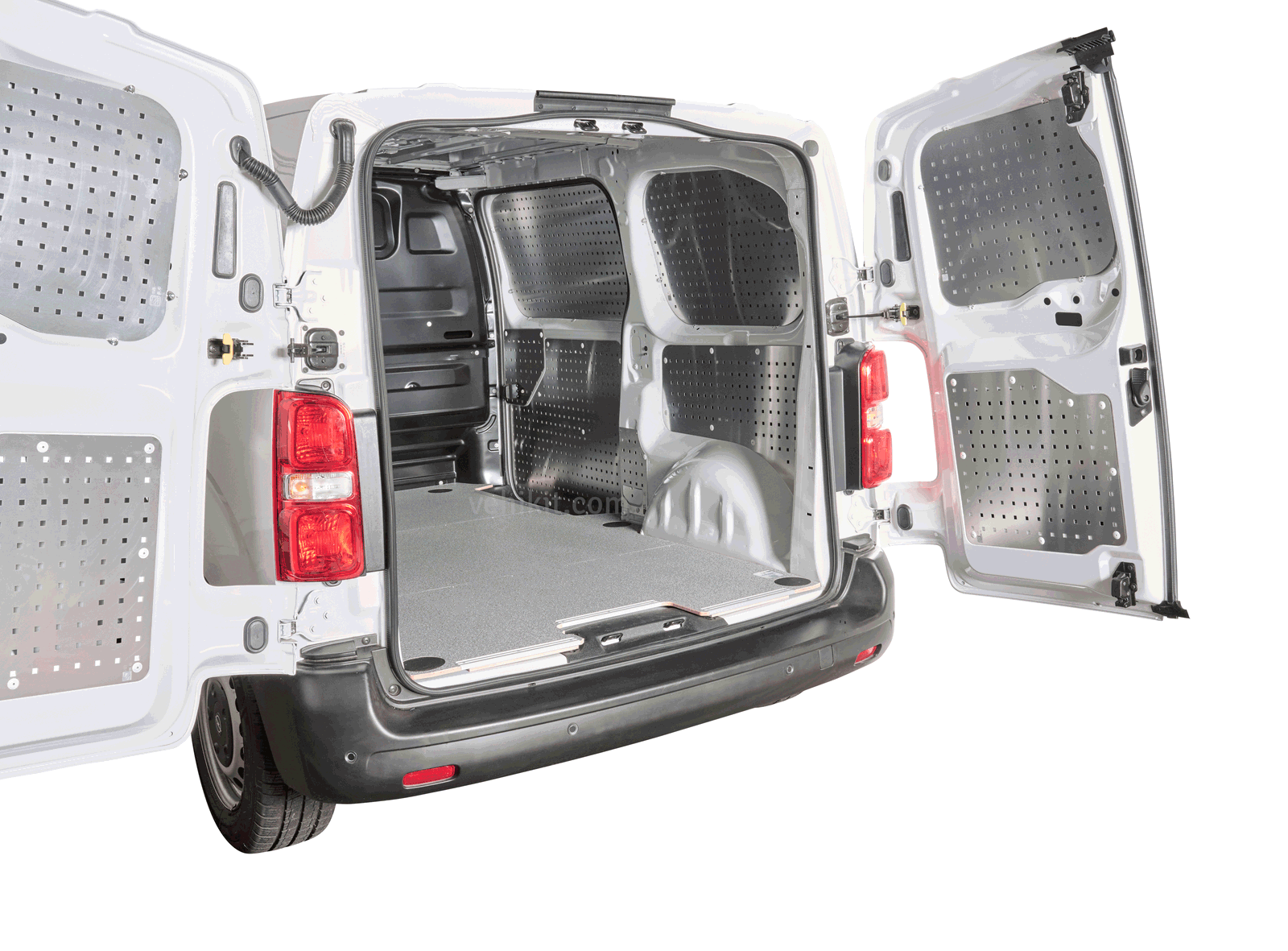Ce kit comprend tous les panneaux pour les parois latérales, la ou les portes coulissantes et la ou les portes arrière de votre véhicule utilitaire. Le cas échéant, les panneaux supérieurs au-dessus des portes sont également inclus. Le matériel de fixation et une notice de montage sont fournis, afin que vous puissiez commencer immédiatement l’installation.