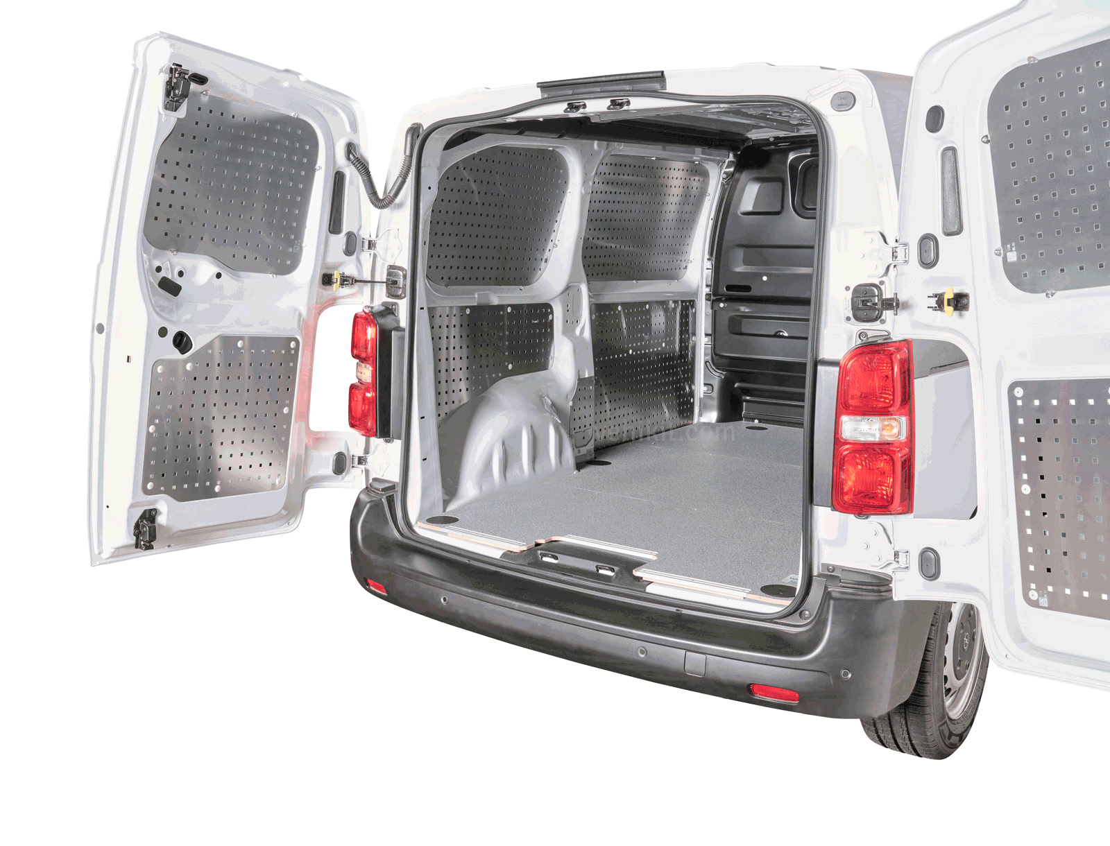 Ce kit comprend tous les panneaux pour les parois latérales, la ou les portes coulissantes et la ou les portes arrière de votre véhicule utilitaire. Le cas échéant, les panneaux supérieurs au-dessus des portes sont également inclus. Le matériel de fixation et une notice de montage sont fournis, afin que vous puissiez commencer immédiatement l’installation.