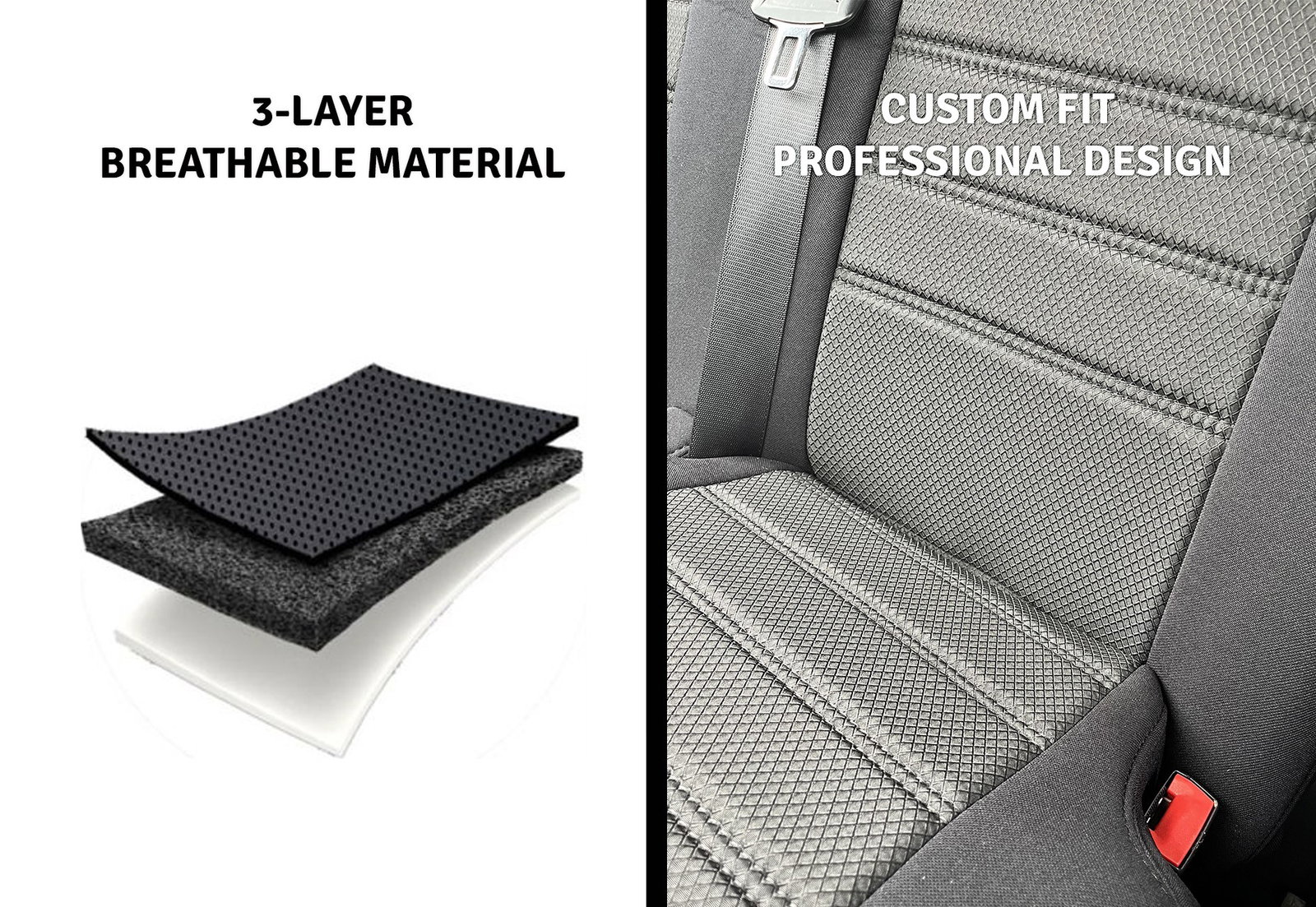 Nos housses de sièges en polyester s’adaptent parfaitement à la forme de vos sièges arrière. Contrairement à la plupart des housses universelles, ces housses de siège sur mesure possèdent trois épaisseurs faites de tissu respirant et de mousse. Elles évitent les plis inconfortables et peu esthétiques. Nous vous proposons deux types de set différents :