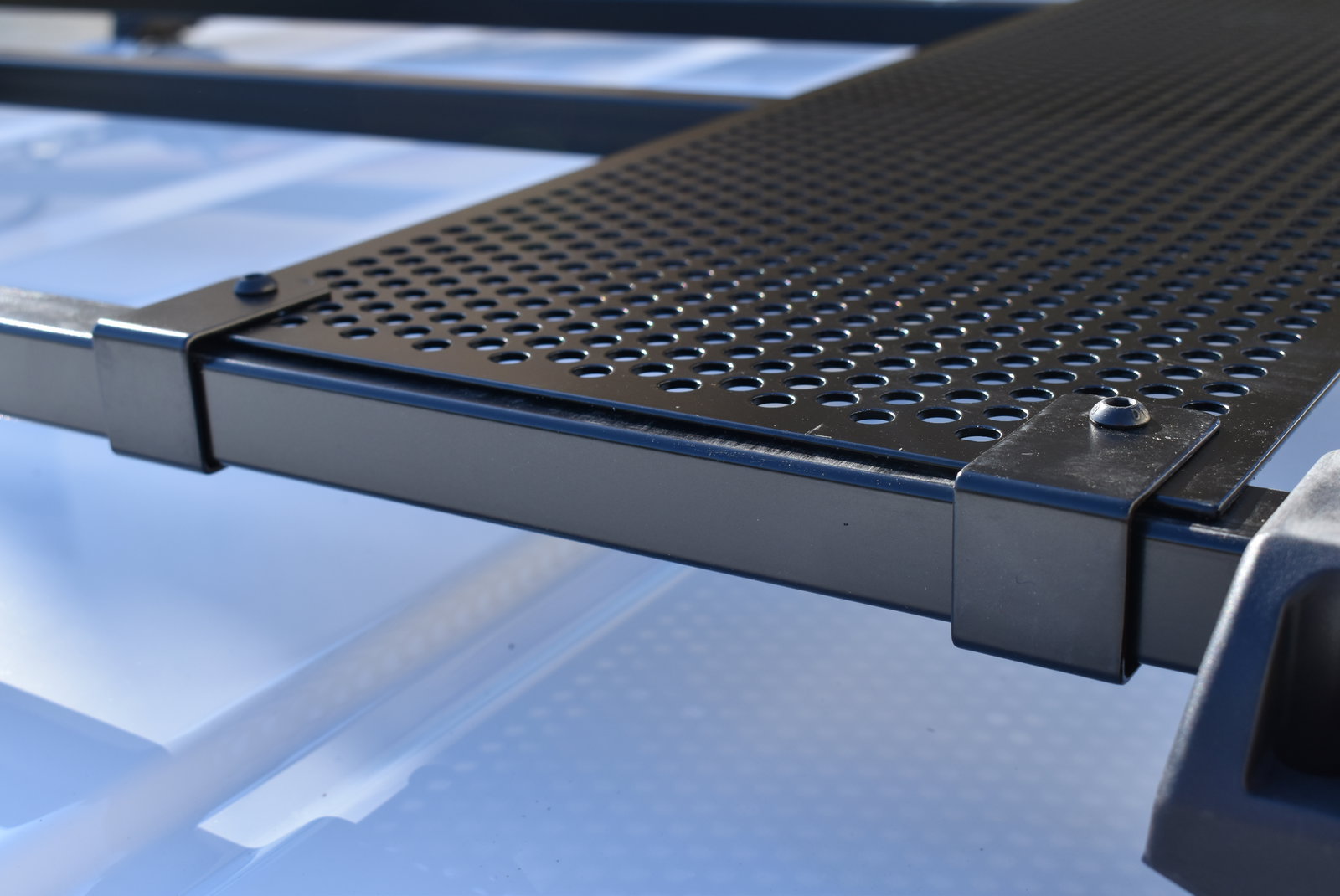 En utilisant la passerelle Pool Line, vous montrez à vos clients et vos employés que la sécurité vous tient à cœur. Charger et décharger devient plus sûr pour votre cargaison, vos employés et vous-même. La finition noire en polyester de la passerelle donne un aspect plus professionnel à votre Peugeot Partner. La passerelle est d’une épaisseur de 2 mm et sa surface est perforée pour minimiser la résistance à l’air. Son design a été pensé pour que votre Peugeot Partner reste aérodynamique.