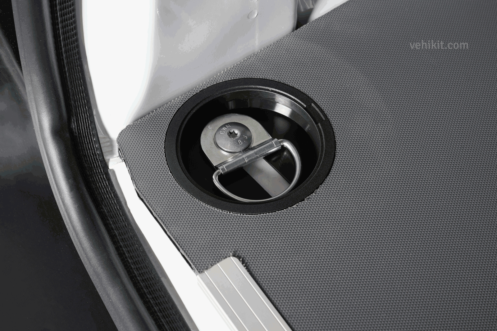 Grâce aux barres de seuil en aluminium, ce plancher utilitaire est bien protégé contre les chocs au niveau des portes coulissantes et arrière. Elles protègent notamment contre les éventuels dégâts causés lors du chargement et déchargement des marchandises. Le plancher possède également des ouvertures pour les points d’arrimage d’origine de votre véhicule utilitaire, afin que vous puissiez continuer à les utiliser pour sécuriser votre cargaison. Vous préférez couvrir les points d’arrimage ? Aucun problème : les caches fournis recouvrent parfaitement les ouvertures. Les coupelles de fixation permettent de maintenir le plancher en place.