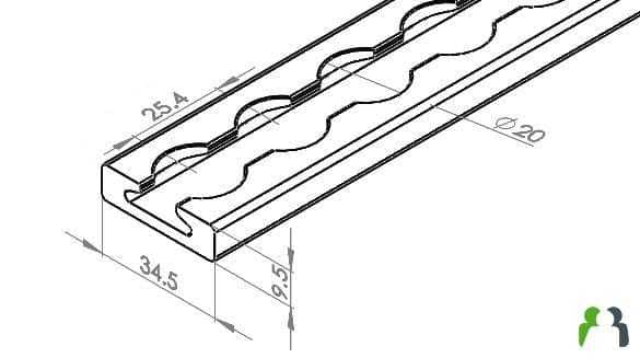 Les rails d'avion en aluminium ont une longueur de deux ou trois mètres et sont idéales pour fixer des sangles et des barres d’arrimage télescopiques. Lorsqu'un système de retenue du chargement est correctement installé et utilisé, les dommages causés au chargement et à l'espace de chargement sont considérablement réduits. En outre, les portes arrière et latérales peuvent présenter des risques lorsqu'elles sont ouvertes pour décharger la cargaison. Une cargaison correctement arrimée évite les blessures et les pertes de temps. En organisant et en sécurisant correctement le chargement, l'espace de chargement peut être optimisé. Pendant le transport, le chargement ne bouge pas, ce qui vous évite de perdre du temps à chercher des marchandises. L'utilisation de systèmes d'arrimage de charges est légalement prescrite et définie dans diverses normes européennes telles que les normes EN 12195-2 et EN 12195-3. Le rail d’arrimage a une longueur de deux ou trois mètres, une largeur de 23 mm et une hauteur de 8,5 mm. Les œillets ont une distance centre à centre de 25 mm et un diamètre de 20 mm.