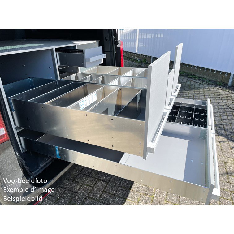 Le système de tiroirs BEKS est fabriqué à partir d'un mélange d'acier inoxydable, d'aluminium et de bois de peuplier. Grâce à cette combinaison, le système de tiroirs bénéficie d’un rapport qualité-prix optimal. Le système de tiroir est léger et garantit une répartition optimale du poids dans votre Volkswagen Crafter. Les tiroirs ont chacun une capacité de charge d'au moins 60 kg. Le système de verrouillage breveté assure un fonctionnement sans faille.