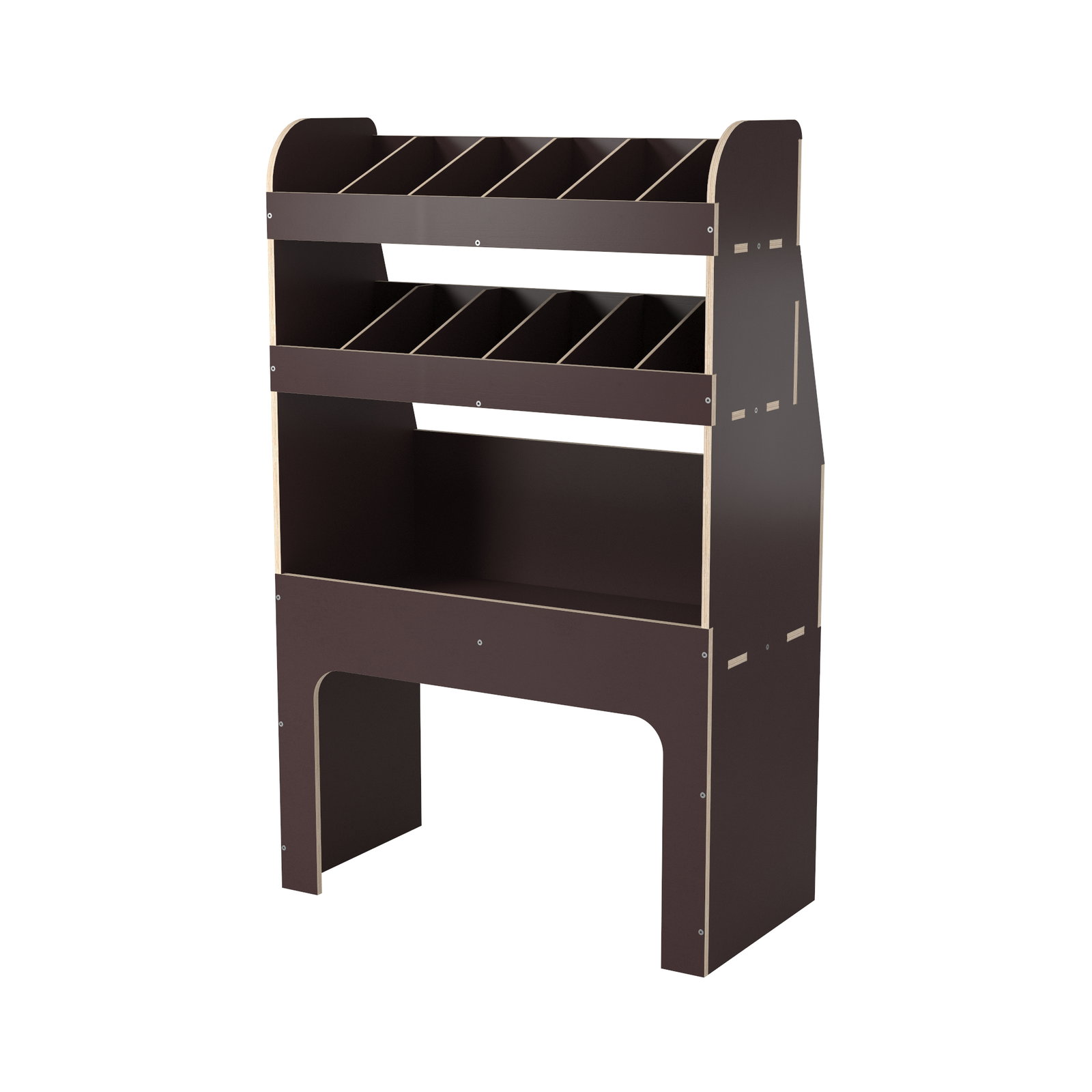 L’ossature de l’aménagement est fabriquée en bois contreplaqué d’une épaisseur de 12 mm. Grâce à leur structure et à leur finition de qualité, les étagères sont imperméables à l’eau et aussi rigides et indéformables que possible. Elles sont ainsi faciles à nettoyer et résistantes aux chocs.