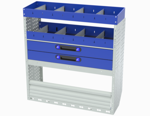 Lors de vos missions, si votre utilitaire n'est pas rangé, vous perdez du temps à chercher vos outils. Ce meuble de rangement vous permet de travailler de façon organisée. Les différentes options qui composent cet aménagement vous permettent de ranger du matériel imposant (perceuse, visseuse, marteaux, caisses à outils etc) et du matériel de petite taille (visserie, accessoires etc).