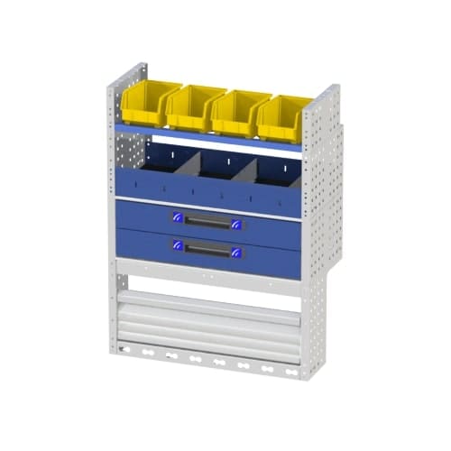Lors de vos missions, si votre utilitaire n'est pas rangé, vous perdez du temps à chercher vos outils. Ce meuble de rangement vous permet de travailler de façon organisée. Les différentes options qui composent cet aménagement vous permettent de ranger du matériel imposant (perceuse, visseuse, marteaux, caisses à outils etc) et du matériel de petite taille (visserie, accessoires etc).