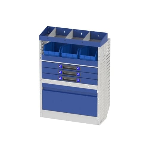 Lors de vos missions, si votre utilitaire n'est pas rangé, vous perdez du temps à chercher vos outils. Ce meuble de rangement vous permet de travailler de façon organisée. Les différentes options qui composent cet aménagement vous permettent de ranger du matériel imposant (perceuse, visseuse, marteaux, caisses à outils etc) et du matériel de petite taille (visserie, accessoires etc).