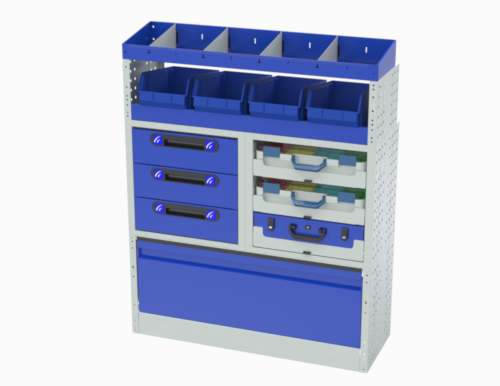 Lors de vos missions, si votre utilitaire n'est pas rangé, vous perdez du temps à chercher vos outils. Ce meuble de rangement vous permet de travailler de façon organisée. Les différentes options qui composent cet aménagement vous permettent de ranger du matériel imposant (perceuse, visseuse, marteaux, caisses à outils etc) et du matériel de petite taille (visserie, accessoires etc).