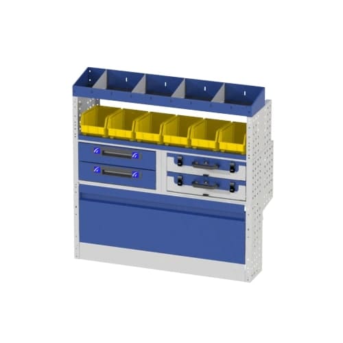 Lors de vos missions, si votre utilitaire n'est pas rangé, vous perdez du temps à chercher vos outils. Ce meuble de rangement vous permet de travailler de façon organisée. Les différentes options qui composent cet aménagement vous permettent de ranger du matériel imposant (perceuse, visseuse, marteaux, caisses à outils etc) et du matériel de petite taille (visserie, accessoires etc).