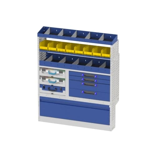 Lors de vos missions, si votre utilitaire n'est pas rangé, vous perdez du temps à chercher vos outils. Ce meuble de rangement vous permet de travailler de façon organisée. Les différentes options qui composent cet aménagement vous permettent de ranger du matériel imposant (perceuse, visseuse, marteaux, caisses à outils etc) et du matériel de petite taille (visserie, accessoires etc).