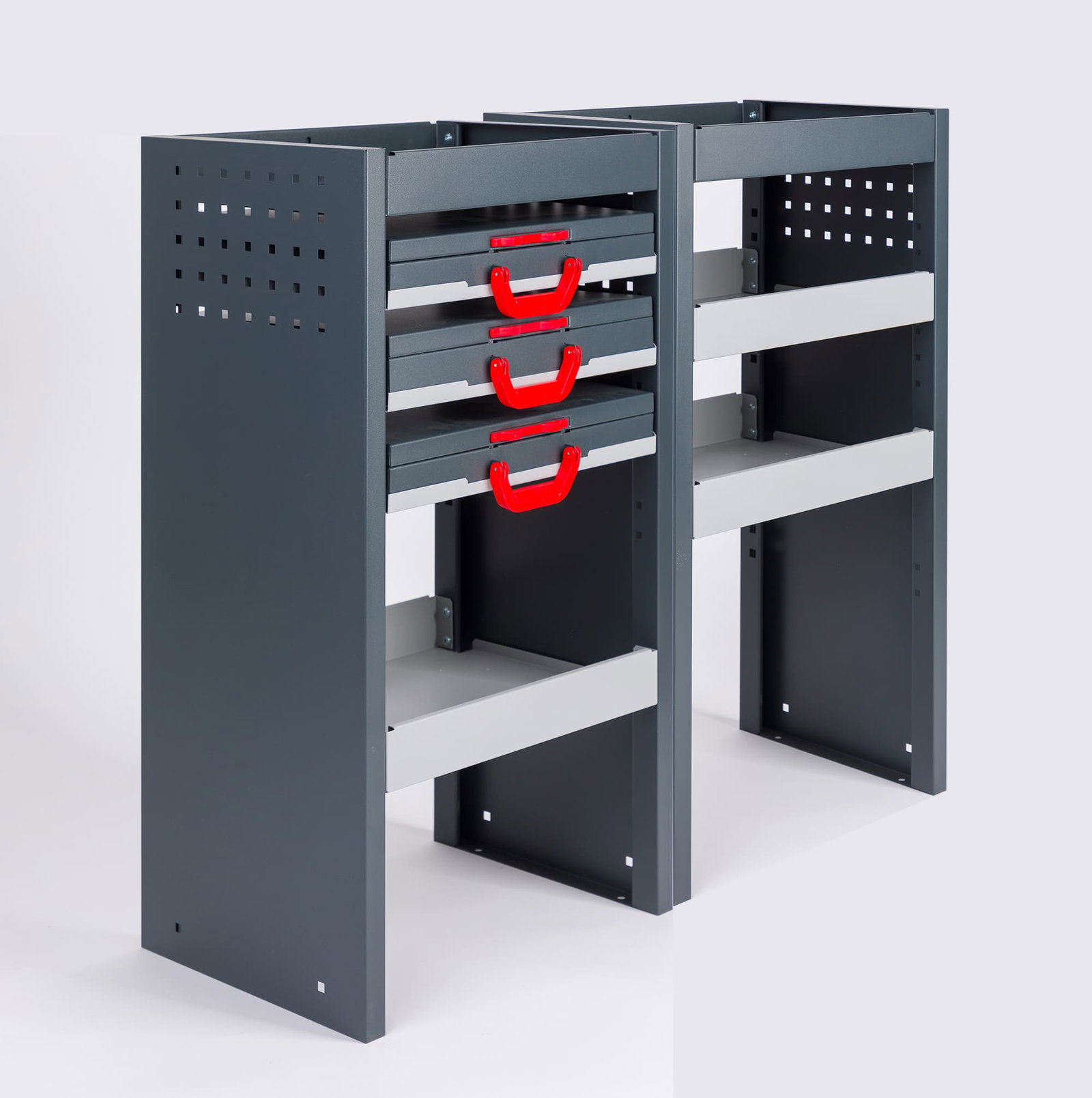 Donnez une image professionnelle, lors de vos visites clients en installant cet aménagement à bord de votre Nissan NV250. Optimisez votre espace de chargement en rangeant votre matériel professionnel. Ne perdez plus de temps à chercher vos outils. Vous préférez avoir des étuis à l'intérieur pour pouvoir ranger facilement clous, vis et mèches ? Découvrez un large choix d’options sur nos meubles de rangement.