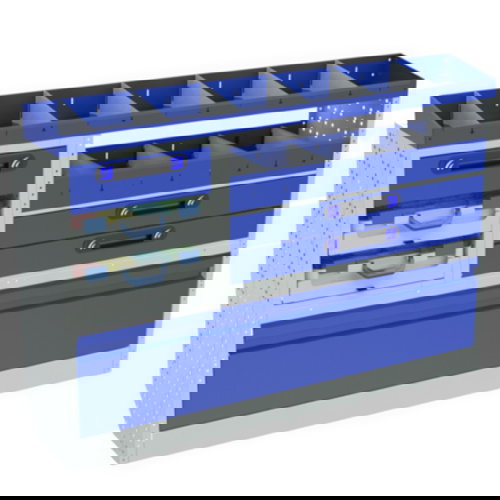 Lors de vos missions, si votre utilitaire n'est pas rangé, vous perdez du temps à chercher vos outils. Ce meuble de rangement vous permet de travailler de façon organisée. Les différentes options qui composent cet aménagement vous permettent de ranger du matériel imposant (perceuse, visseuse, marteaux, caisses à outils etc) et du matériel de petite taille (visserie, accessoires etc).