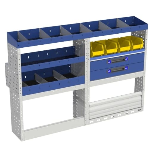 Lors de vos missions, si votre utilitaire n'est pas rangé, vous perdez du temps à chercher vos outils. Ce meuble de rangement vous permet de travailler de façon organisée. Les différentes options qui composent cet aménagement vous permettent de ranger du matériel imposant (perceuse, visseuse, marteaux, caisses à outils etc) et du matériel de petite taille (visserie, accessoires etc).