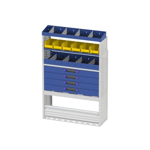 Lors de vos missions, si votre utilitaire n'est pas rangé, vous perdez du temps à chercher vos outils. Ce meuble de rangement vous permet de travailler de façon organisée. Les différentes options qui composent cet aménagement vous permettent de ranger du matériel imposant (perceuse, visseuse, marteaux, caisses à outils etc) et du matériel de petite taille (visserie, accessoires etc).
