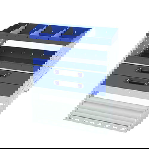 Lors de vos missions, si votre utilitaire n'est pas rangé, vous perdez du temps à chercher vos outils. Ce meuble de rangement vous permet de travailler de façon organisée. Les différentes options qui composent cet aménagement vous permettent de ranger du matériel imposant (perceuse, visseuse, marteaux, caisses à outils etc) et du matériel de petite taille (visserie, accessoires etc).