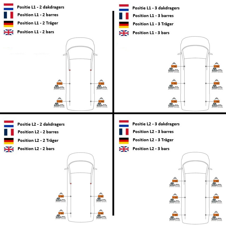 Attention ! Si vous achetez un set de 2, il ne sera pas possible de compléter votre set avec une barre supplémentaire après votre achat, les barres de toit n’étant pas vendues à l’unité. Ainsi, chaque barre a sa propre position sur le toit. Il est donc important de monter les barres de toit conformément aux instructions.