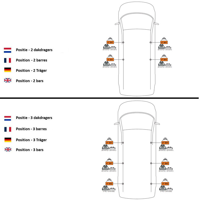 Attention ! Si vous achetez un set de 2, il ne sera pas possible de compléter votre set avec une barre supplémentaire après votre achat, les barres de toit n’étant pas vendues à l’unité. Ainsi, chaque barre a sa propre position sur le toit. Il est donc important de monter les barres de toit conformément aux instructions.