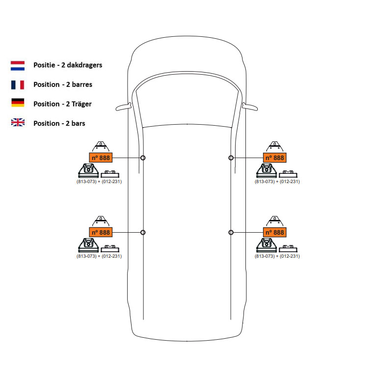 Attention! Si vous achetez un lot de 2 barres, il ne sera pas possible d’acheter une troisième ou quatrième barre par la suite, les barres n’étant pas vendues de manière détachée. De plus, chaque barre a une position prédéfinie sur le toit, vous ne pouvez pas les placer où vous le souhaitez. Il est donc important de monter les barres de toit en suivant les instructions.
