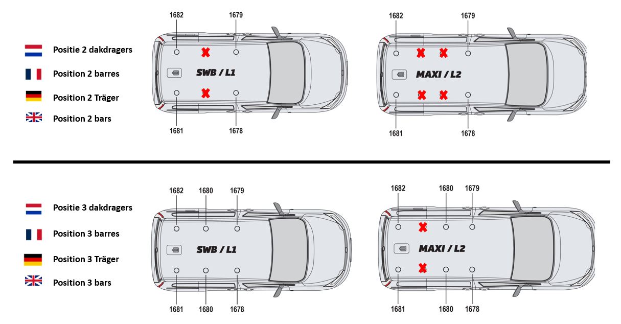 - Il n'est pas possible d'équiper les barres de serrures pour les fixer au toit