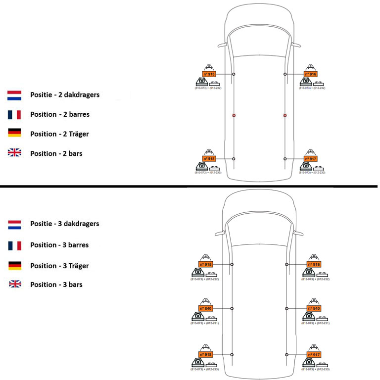 Attention! Si vous achetez un lot de 2 barres, il ne sera pas possible d’acheter une troisième ou quatrième barre par la suite, les barres n’étant pas vendues de manière détachée. De plus, chaque barre a une position prédéfinie sur le toit, vous ne pouvez pas les placer où vous le souhaitez. Il est donc important de monter les barres de toit en suivant les instructions.