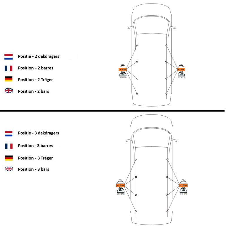 Attention! Si vous achetez un lot de 2 barres, il ne sera pas possible d’acheter une troisième ou quatrième barre par la suite, les barres n’étant pas vendues de manière détachée. De plus, chaque barre a une position prédéfinie sur le toit, vous ne pouvez pas les placer où vous le souhaitez. Il est donc important de monter les barres de toit en suivant les instructions.