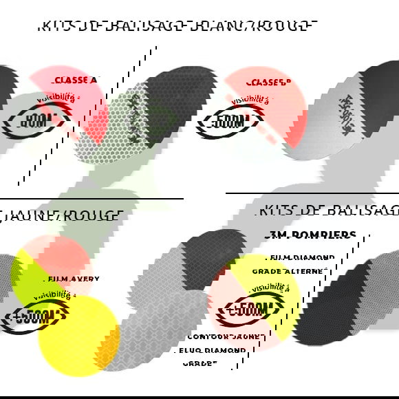Pour les voies rapides ou les situations avec un plus haut risque, il est conseillé d’utiliser un balisage de classe B pour une visibilité à 500 mètres.